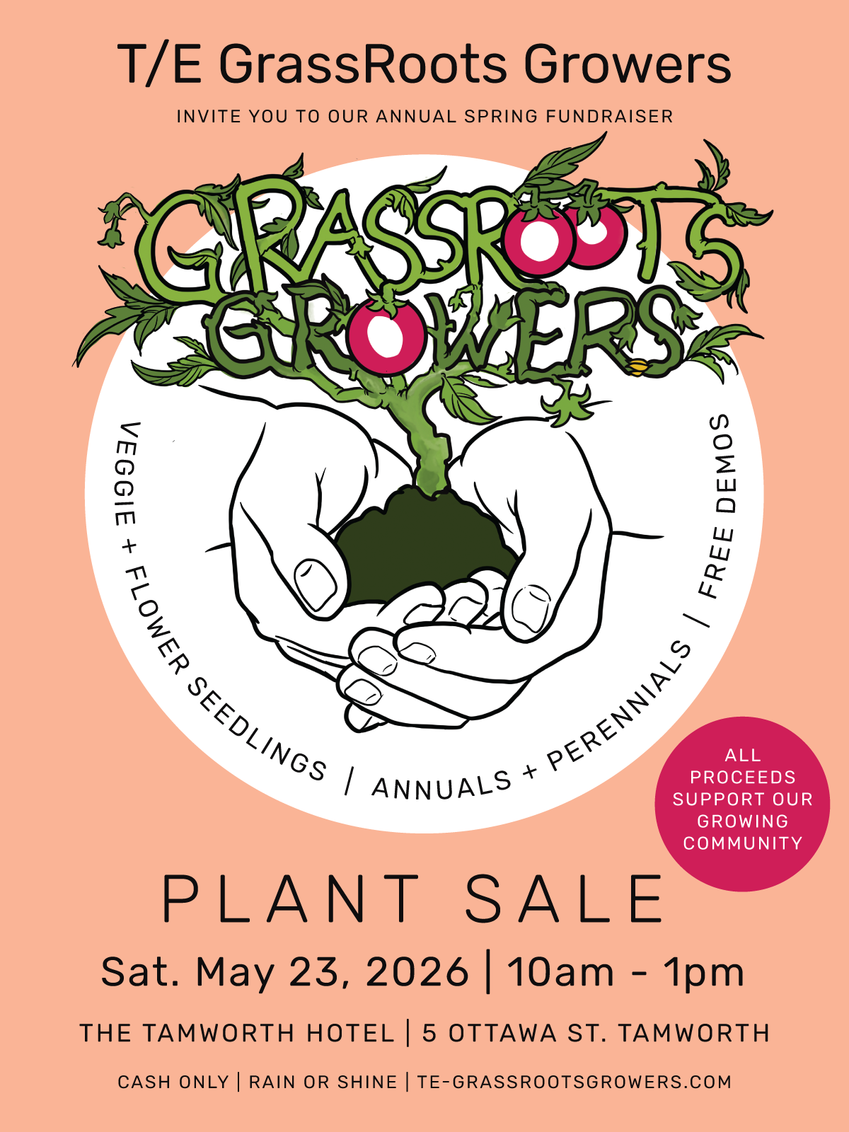 Join us on May 23th for the 2026 Spring Plant Sale! Come by the Tamworth Hotel rain or shine to stock up on your favourite vegetable seedlings, flowers, shrubs and houseplants.